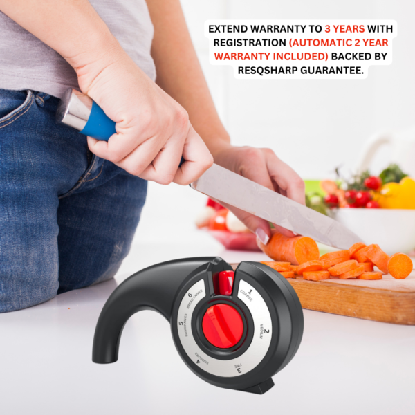 The ResQSharp Professional Electric Kitchen Knife Sharpener is an angle-guided sharpener that uses flexible abrasives, controlled speeds, and timed sharpening cycles to shape, sharpen, and refine all your kitchen knives at the...
